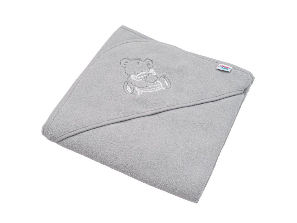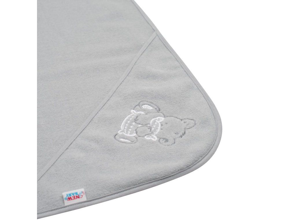 Detská froté osuška s výšivkou a kapuckou New Baby 80x80 sivá medveď - 41523