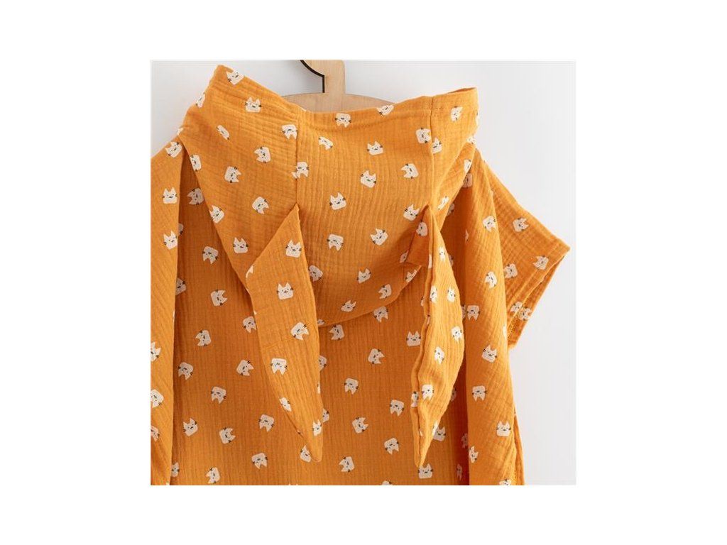 Detské mušelínové pončo New Baby Feeling. Štýlové pončo nielen na doma, ale aj na plávanie pri bazéniku, alebo pri vode. Mušelínové pončo je vďaka materiálu ľahké, vzdušné a krásne savé. Pončo bude chrániť dieťa pred chladom a poslúži aj ako jemná osuška. Vďaka voľnému jedinečnému strihu a roztomilým uškám urobí deťom veľkú radosť. Svojim strihom s dieťatkom porastie a padne na každú postavu. Vyzerá skvele a je možné využívať po celý rok. Pre ľahšie obliekanie a vyzliekanie sú na boku cvočky. Tým vznikne možnosť urobiť otvor na ruku, alebo nechať strih volný. V predu je našité praktické vrecko, ktoré určite deťom veľmi poslúži.