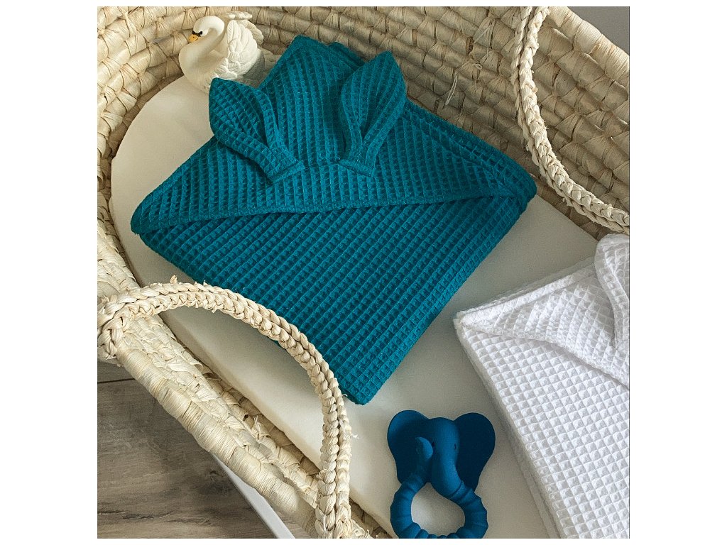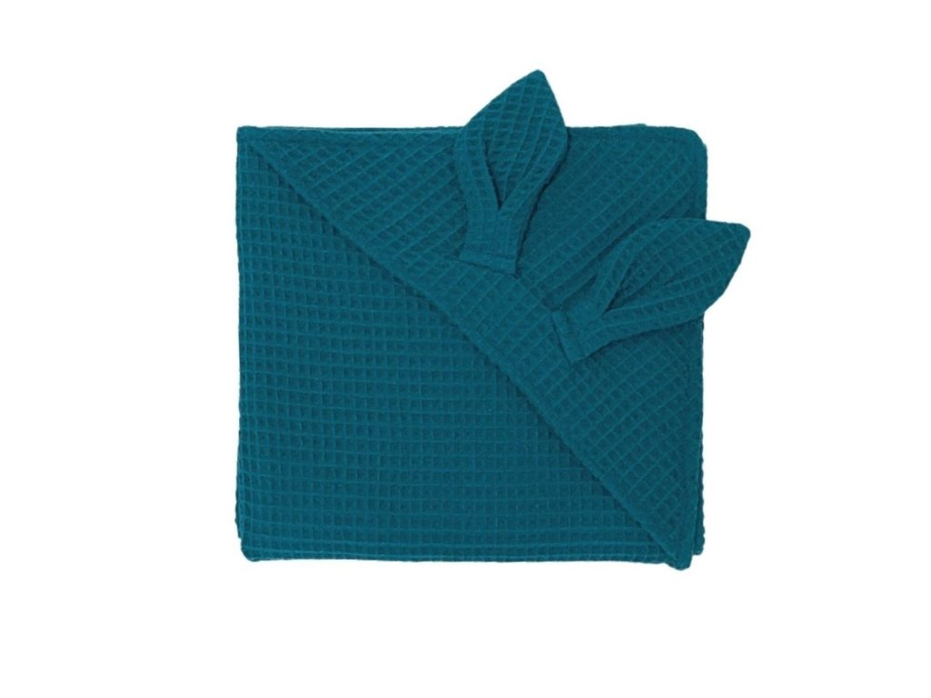 levin felin Detská osuška s kapucňou vafle 100x100cm s uškami farba:tmavo petrolejová