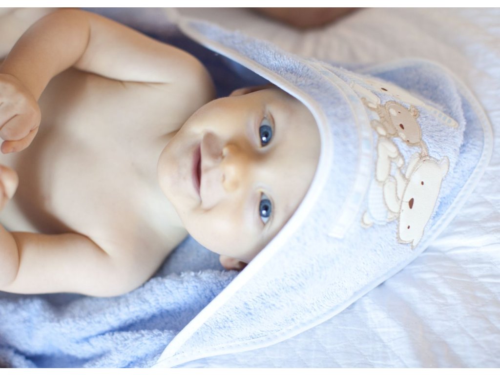 Osuška z čistej bavlny s kapucňou - Vaše bábätko po kúpaní osuší a zahreje.