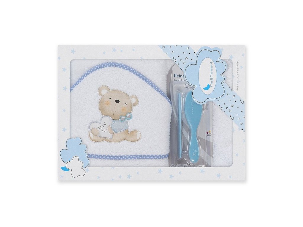 INTERBABY | Osuška froté MACKO LOVE + kefa - BIELO/MODRÁ