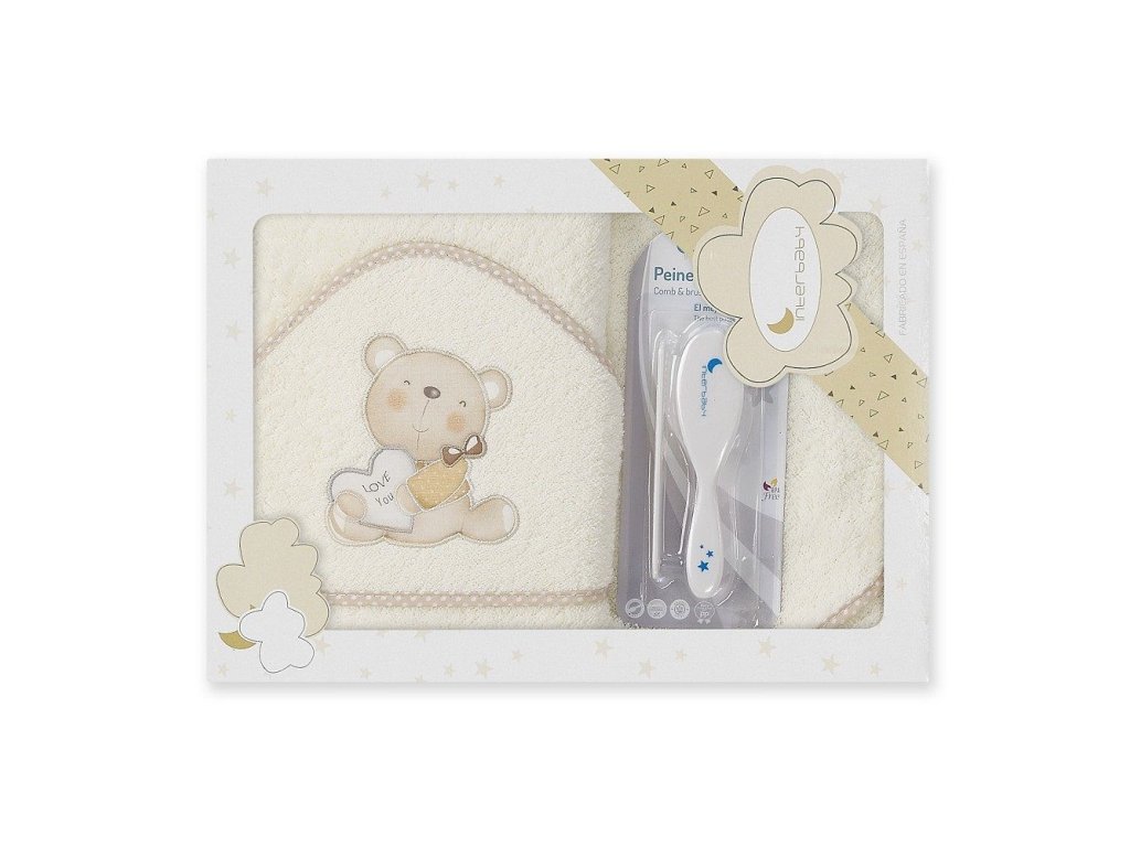 INTERBABY | Osuška froté MACKO LOVE + kefa - KRÉMOVÁ