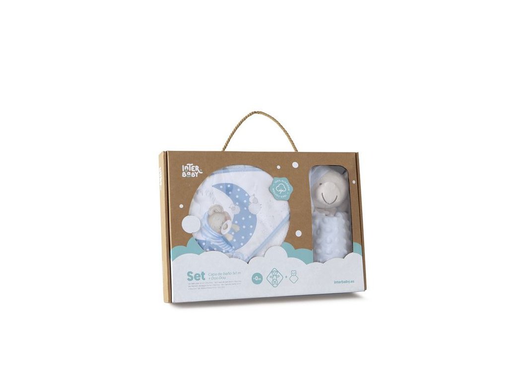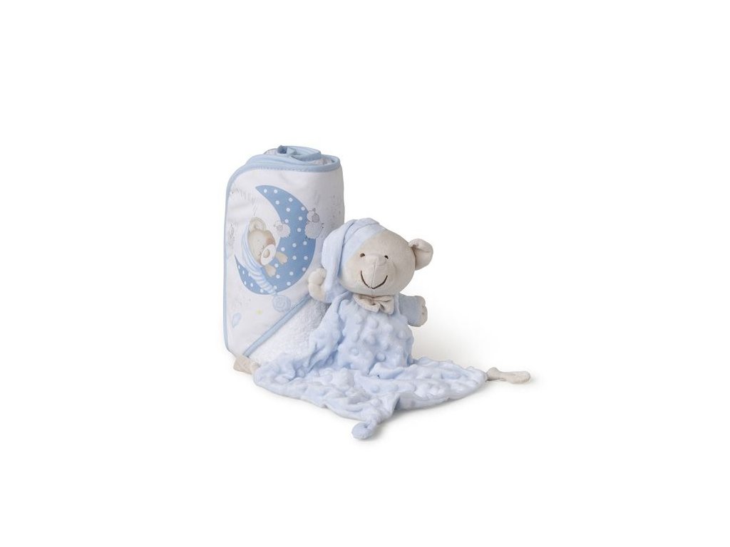 INTERBABY | SET - OSUŠKA froté 100x100 Medvedík spí + PRÍTULKA - modrá