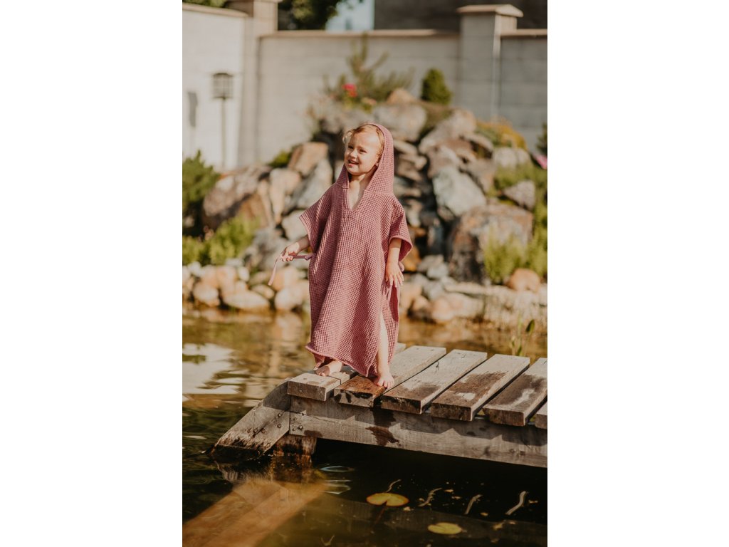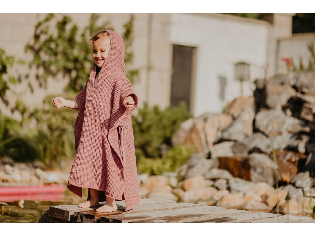 Ak máte radi naše detské osušky, vo výbave vášho dieťatka by nemalo chýbať ani naše pončo, ktoré je rovnako zo 100 % bavlny, ktorá je absolútne šetrná a príjemná pre vaše dieťatko. Pončo využijete všade tam, kde sa dieťatko kúpe – pláž, kúpalisko, záhrada s bazénom, alebo jednoducho po každodennom kúpeli. Vďaka rôznym farbám pončo ľahko zladíte s našim ostatným textilom.