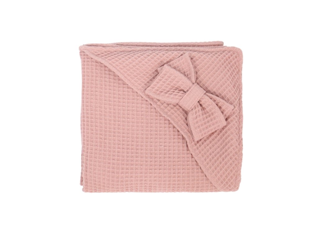 Levinfelin Detská osuška s kapucňou a mašličkou – tlmená ružová