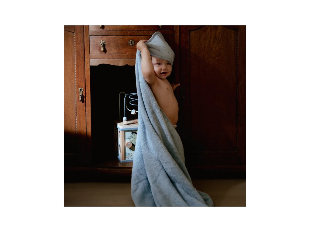 Mäkká froté osuška s kapucňou z jemnej organickej bavlny je ideálna pre jednoduché a rýchle osušenie a zabalenie dieťaťa po kúpeli.