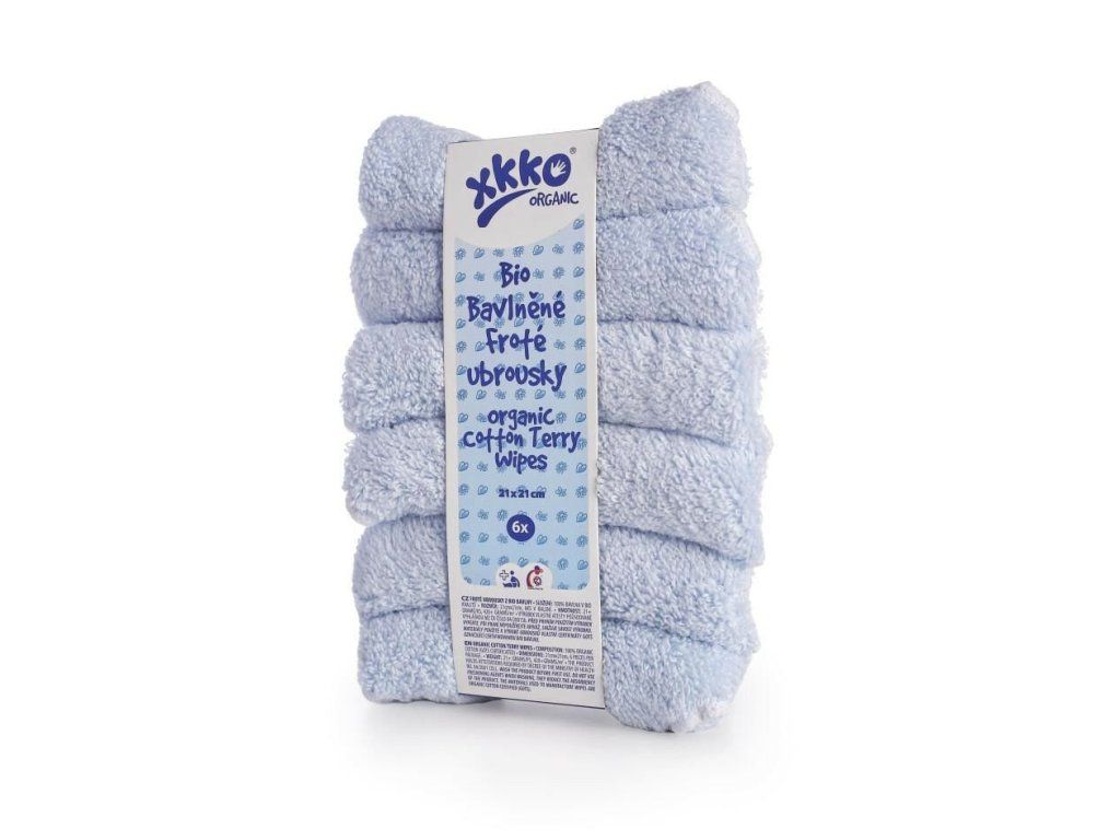 BIO-bavlnené obrúsky XKKO Organic sú vyrobené z mimoriadne kvalitného „zero twisted“ bavlneného froté s certifikátom GOTS.