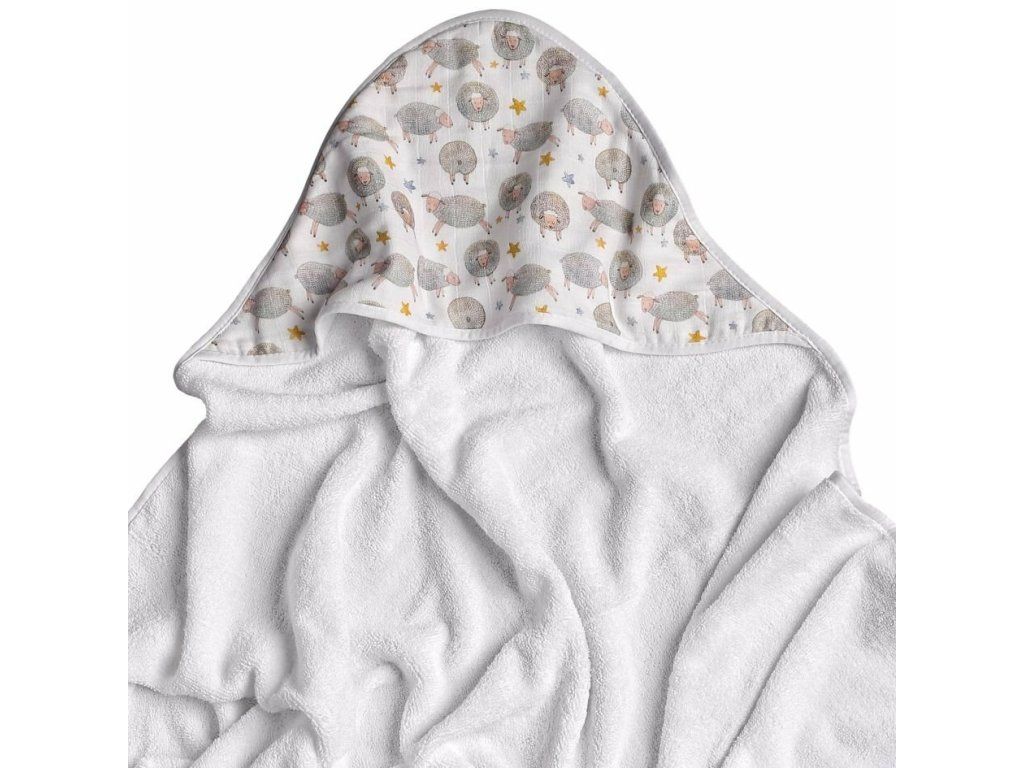 XKKO BMB Bambusová froté osuška s kapucňou, 90x90 - Dreamy Sheeps