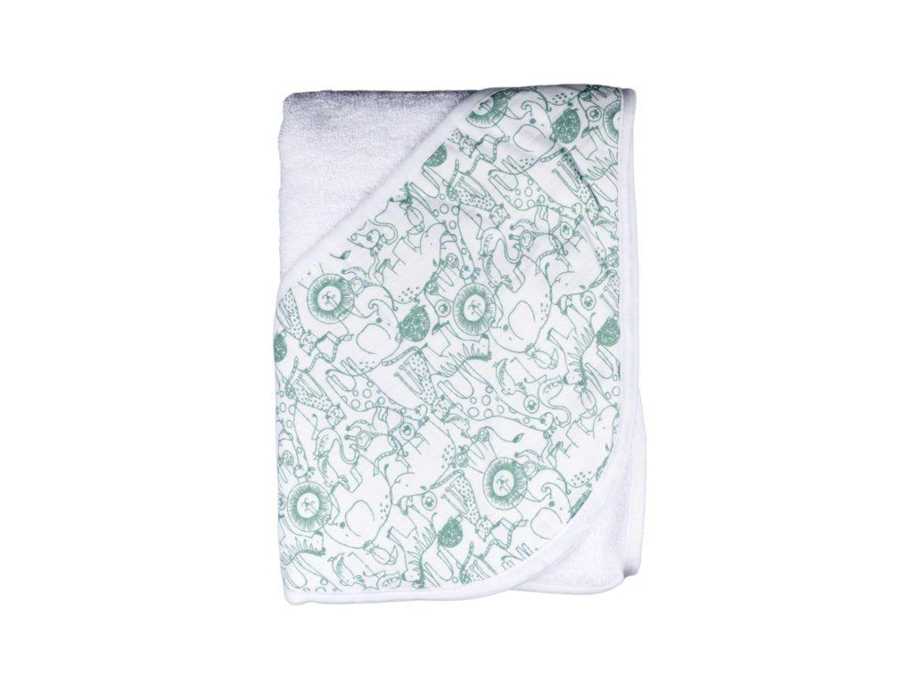 XKKO BMB Bambusová froté osuška s kapucňou, 90x90 - Safari W/Granite Green