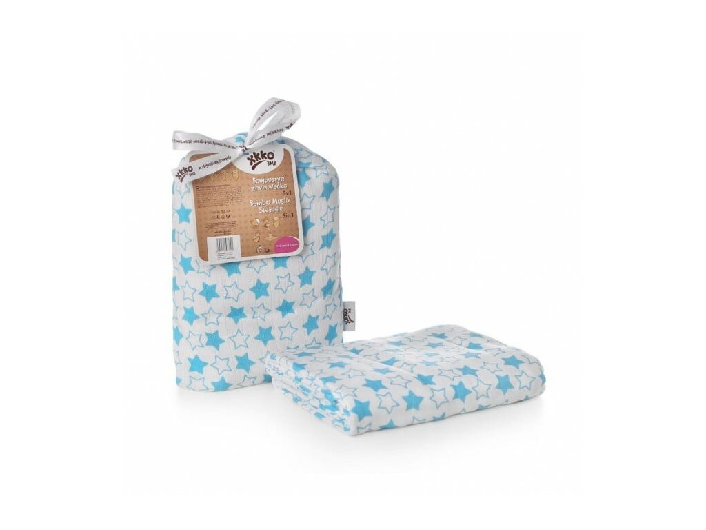 XKKO BMB zavinovačka - osuška, 120x120 - Little Stars Cyan