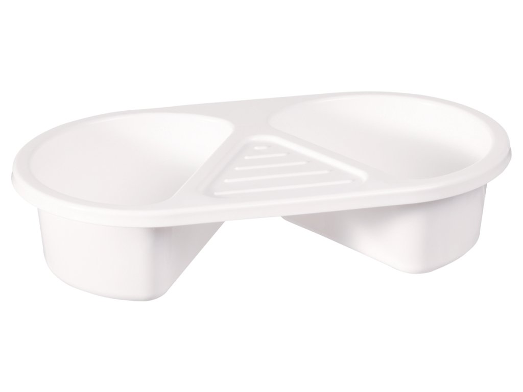 Ľahká, hygienická a bezpečná. Niektoré deti majú strach, keď sa majú kúpať. Nesnažte sa ich presvedčiť. Môžete totiž ľahko umyť dieťa žinkou z froté príjemne teplou vodou z umývacej misky. Tá má dve nádobky na vodu. Ľavú pre čistú vodu a pravú na vypláchnutie žinky alebo naopak, samozrejme. Uprostred je praktické miesto na mydlo. Umývaciu misu využijete najviac v prvé dni a týždne po narodení, ale aj neskôr, kedykoľvek sa vydáte na cesty. Prečo sťahovať na chalupu alebo chatu celú vaničku.