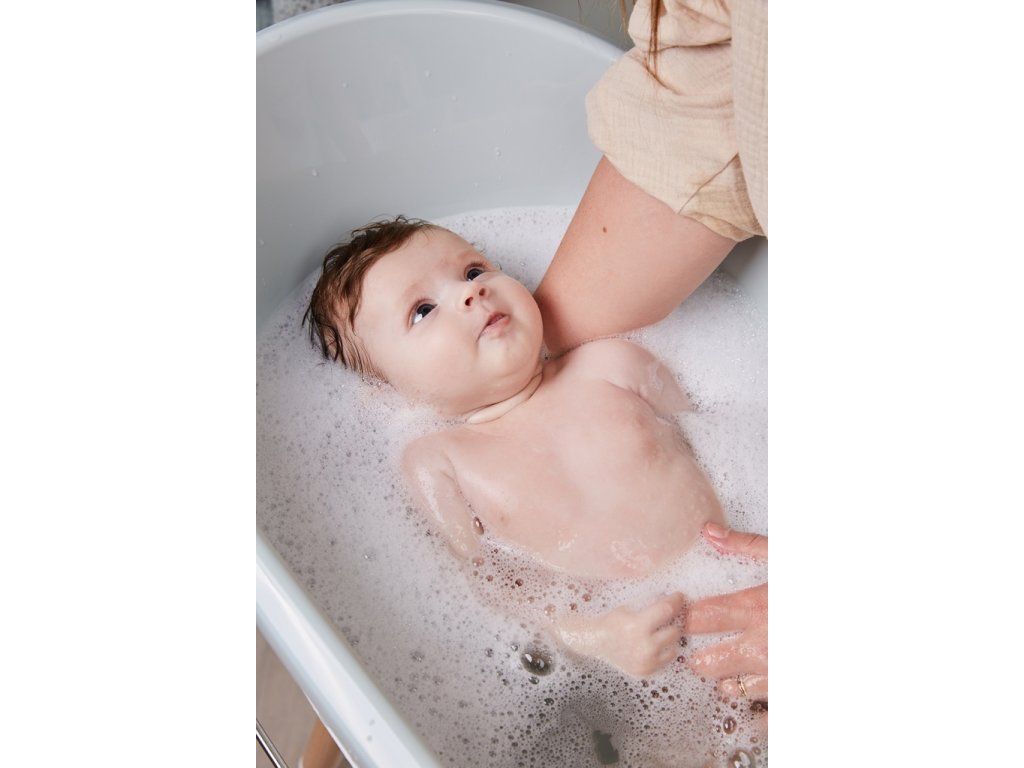 Veľmi stabilný vaňový stojan Sense má nohy vyrobené z lakovaného bukového dreva s certifikáciou FSC. To dodáva stojanu teplý moderný vzhľad. Je vybavený praktickými pomôckami; vpredu je pripevnený držiak na uteráky. Priestranná plastová polička poskytuje dostatok miesta napríklad na šampón, žinku, vodné hračky alebo kúpací gél. To znamená, že máte po ruke všetky potrebné veci, aby ste si s malým mohli v pokoji kúpanie užiť. Inovatívny systém upevnenia zaisťuje, že vaňu možno ľahko pripevniť k stojanu a rovnako ľahko sňať. Po kliknutí môžete svoje bábätko nerušene a bezpečne kúpať.