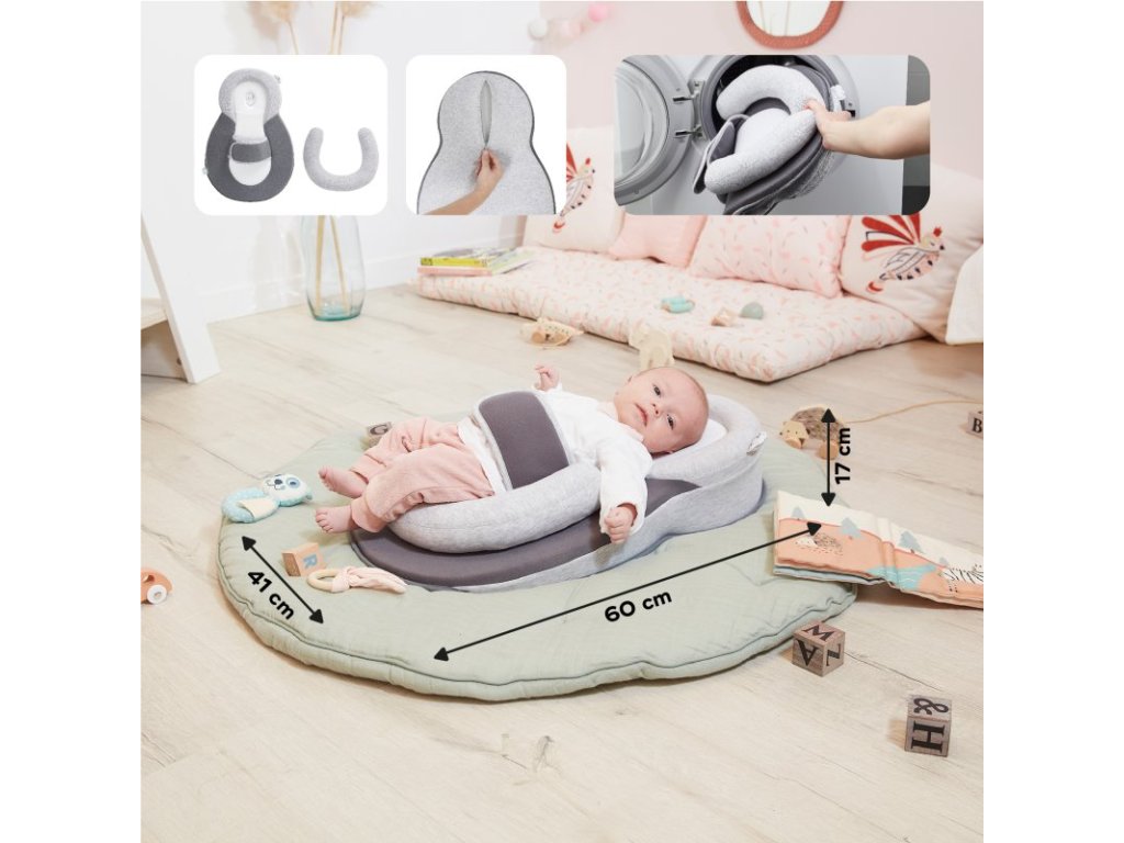 - vankúš zaručuje perfektnú polohu pre novorodenca: ideálna poloha chrbátika, hlavičky a zdvihnutých nožičiek