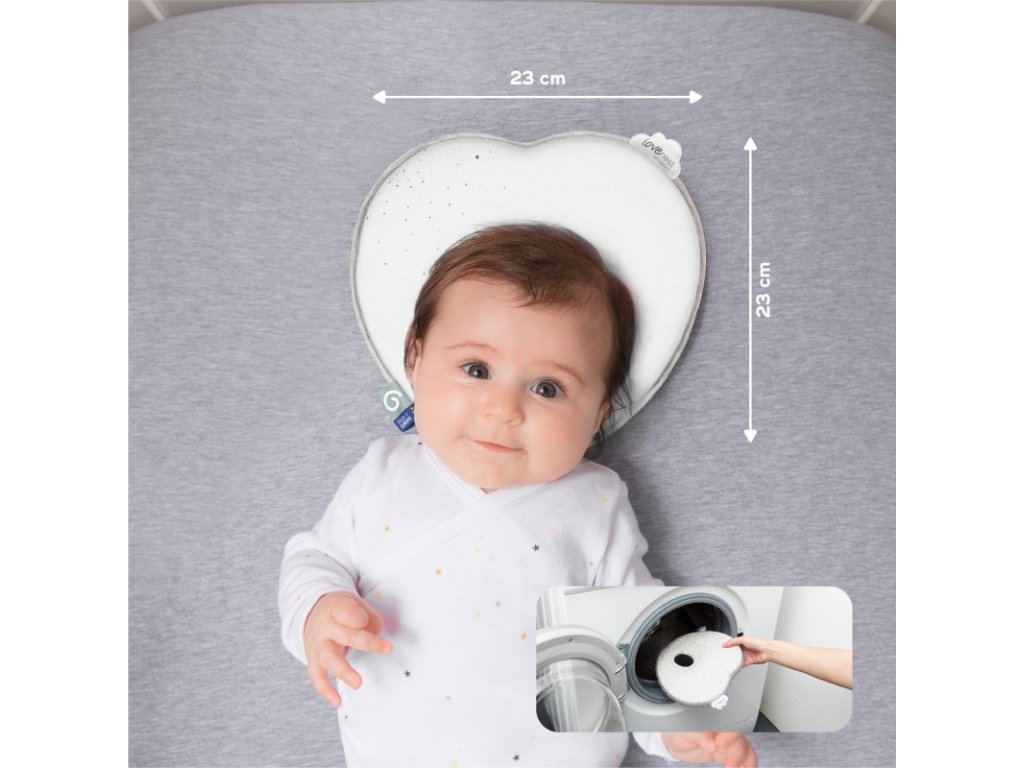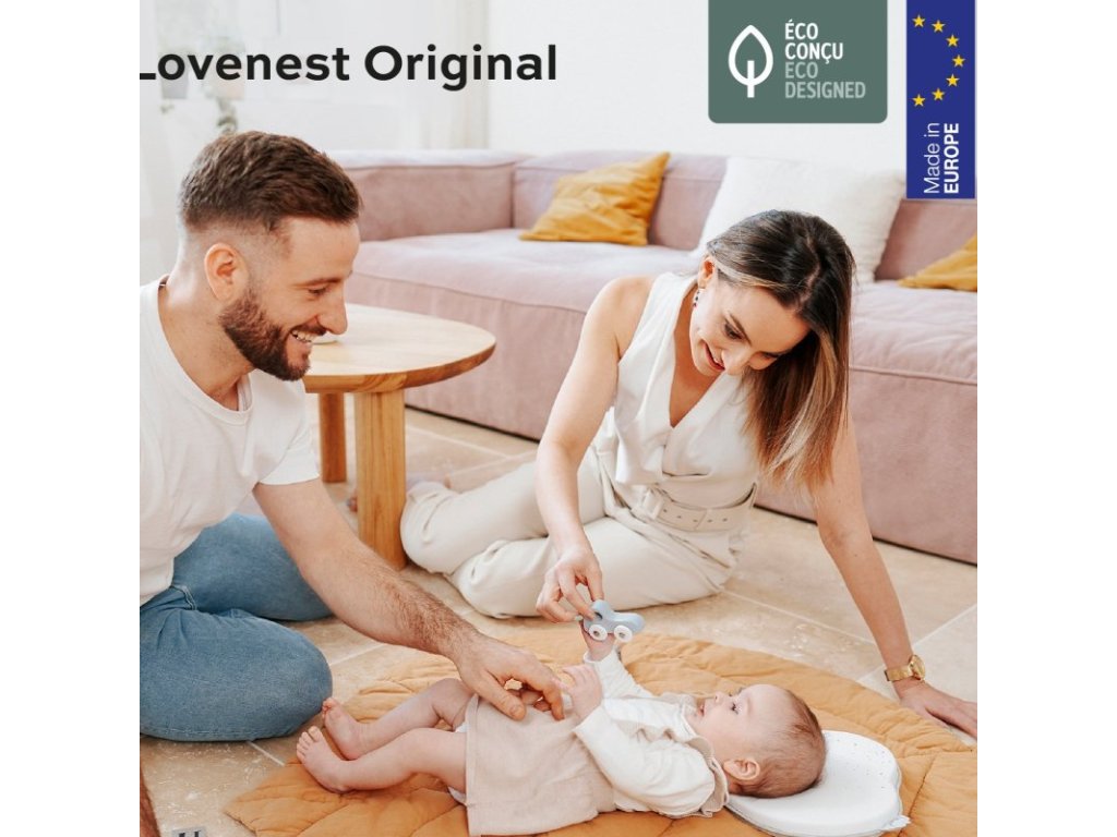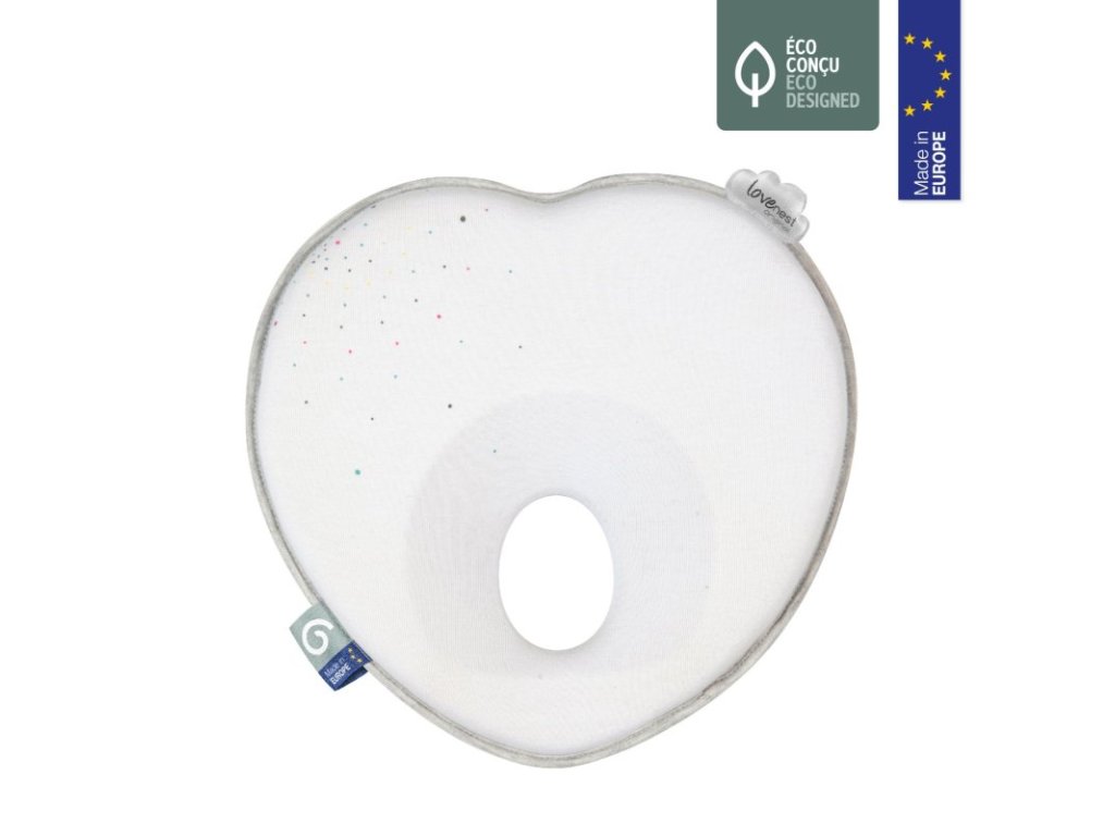 Podhlavníček LoveNest bol patentovaný a je vyrábaný v Portugalsku. Je špeciálne tvarovaný tak, aby vyhovoval tvaru lebky dojčatá a zaisťoval rovnomerné rozloženie tlaku po hlavičke a zároveň umožňoval úplnú voľnosť pohybu.