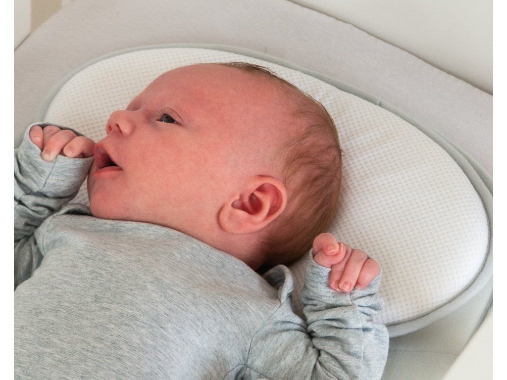 Špeciálne navrhnutý tvar vankúšika pomáha zabraňovať deformácii tvaru hlavičky dieťaťa.