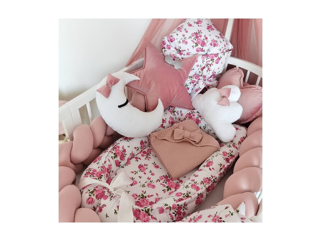 Vankúš v tvare mesiaca je svojim prevedením do detskej postieľky ako stvorený. Jeho chutné očká a mašlička, nielen rozžiaria každému dieťatku očká, ale povzbudia ich fantáziu. Jeho neodmysliteľnou súčasťou je aj kvalitný materiál, luxusný velvet, ktorý zaručuje pohodlie vášho dieťatka. Mašlička na vankúšiku podčiarkuje jeho roztomilosť a je takisto z velvetu. Ak si však mašličku prajete z iného materiálu, ako je velvet, môžeme vám ponúknuť prevedenie z bavlny, alebo mušelínu. Napíšte nám, prosíme, materiál a farbu do poznámky k objednávke – pomôže vám pri tom náš vzorkovník.