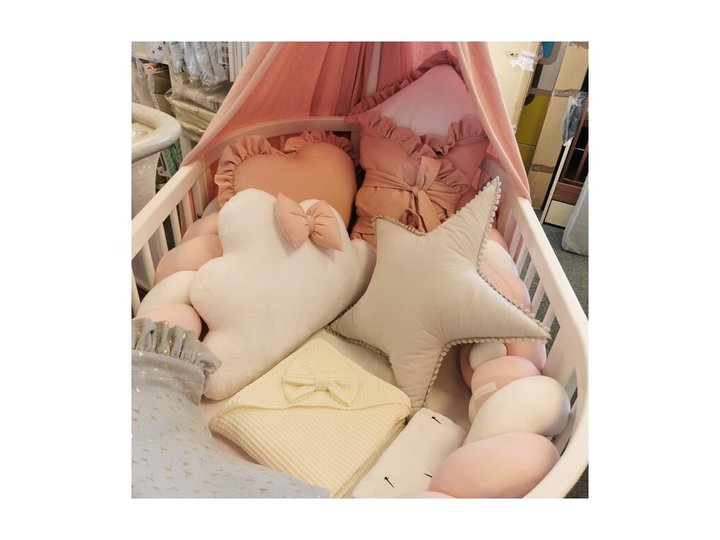 Vankúš Oblak je skvelá voľba, pretože svojim tvarom zaujme dieťatko už od útleho veku. Je doplnený bavlnenou mašľou(lesklá je zo 100% polyesteru), Povrch vankúša je hebučký minky plyš, ktorý si môžete zvoliť buď hladký alebo vypuklý. Mašľa je zo 100% bavlny a viete si ju doladiť k ďalším textíliám, ako sú plachty, baldachýn, či nebesá. K vankúšu Oblak doporučujeme kúpu našej detskej deky, s ktorou sa viete materiálovo aj farebne perfektne zladiť.