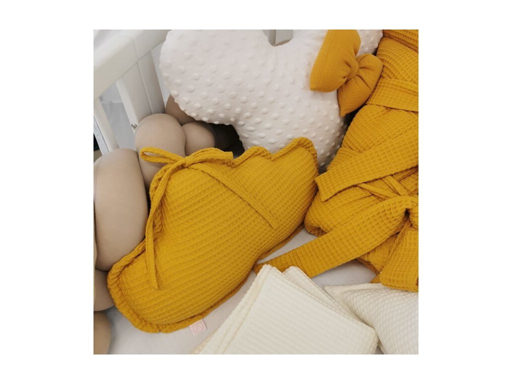 Vankúš Oblak vafle je skvelá voľba, pretože svojim tvarom zaujme dieťatko už od útleho veku. Povrch vankúša je úžasná bavlna vafle a je zaujímavý jemným lemom po celom obvode a mašličkou z rovnakého materiálu. Vankúš viete doladiť k ďalším textíliám, ako sú plachty, baldachýn, či nebesá. K vankúšu Oblak doporučujeme kúpu našej detskej deky so strapcami s ktorou sa viete materiálovo aj farebne perfektne zladiť.
