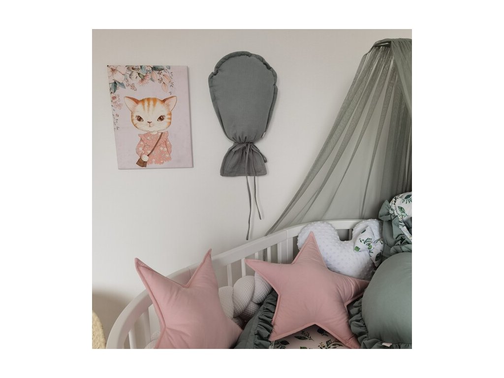 Detský dekoračný vankúšik v tvare oválneho balónu je skvelou voľbou pri zariaďovaní izbičky. Táto krásna dekorácia nielenže upúta pozornosť, ale aj rozžiari nejedno detské očko. Je z kvalitného materiálu mušelínu, ktorý je jemný a zároveň vzdušný. Vankúšik môžete vďaka pútku na zadnej strane použiť napr. aj na stenu a takisto viete regulovať viazanie a dĺžku šnúrok. Farbu vankúšika si viete zvoliť zo širokej škály farebných variantov a zladiť ju k ostatným doplnkom v detskej izbe.