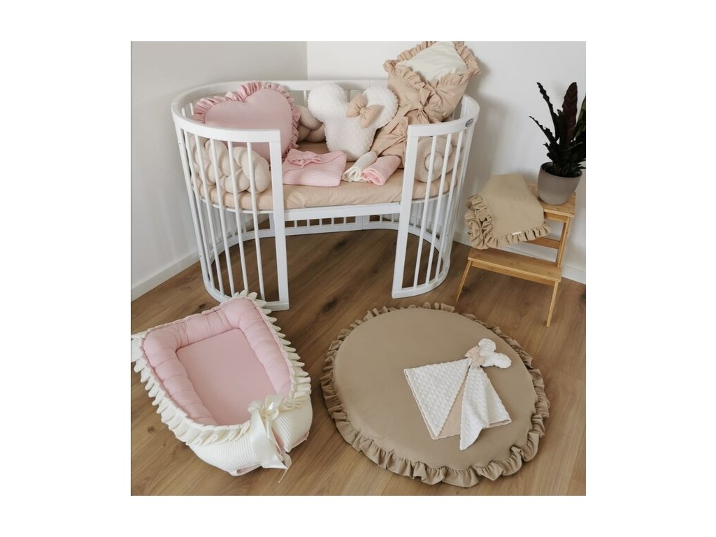 Vankúš Srdce je skvelá voľba, pretože svojim tvarom zaujme dieťatko už od útleho veku. Povrch vankúša je 100% bavlna a jeho okraje tvoria nádherné volány. Vankúš viete doladiť k ďalším textíliám, ako sú plachty, baldachýn, či nebesá.