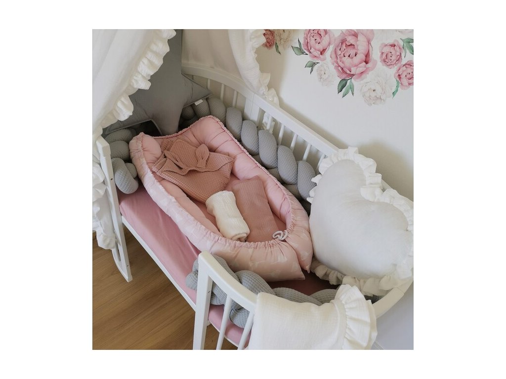 Vankúš Srdce je skvelá voľba, pretože svojim tvarom zaujme dieťatko už od útleho veku. Povrch vankúša je najkvalitnejší mušelín a jeho okraje tvoria nádherné volány. Vankúš viete doladiť k ďalším textíliám, ako sú plachty, baldachýn, či nebesá. K vankúšu Srdce doporučujeme kúpu našej mušelínovej deky s volánom, s ktorou sa viete materiálovo aj farebne perfektne zladiť.