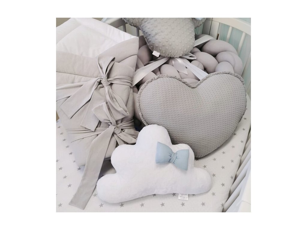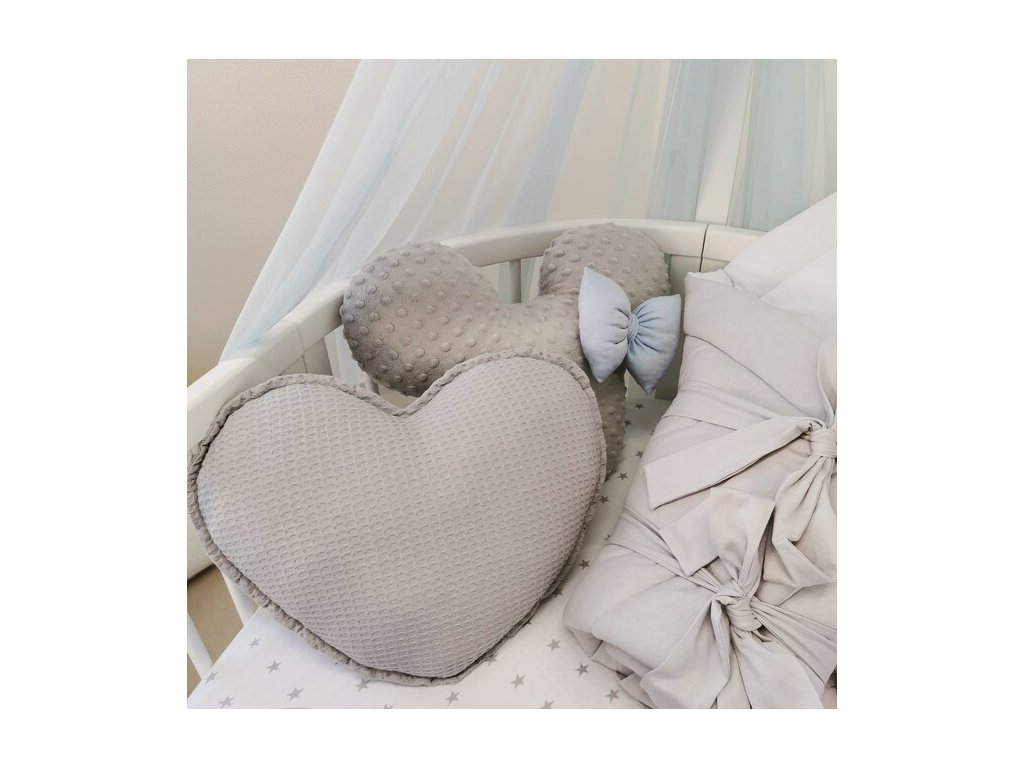 Vankúš Srdce je skvelá voľba, pretože svojim tvarom zaujme dieťatko už od útleho veku. Povrch vankúša je 100% bavlna a jeho okraje zdobí tenučký lem. Vankúš viete doladiť k ďalším textíliám, ako sú plachty, baldachýn, či nebesá.