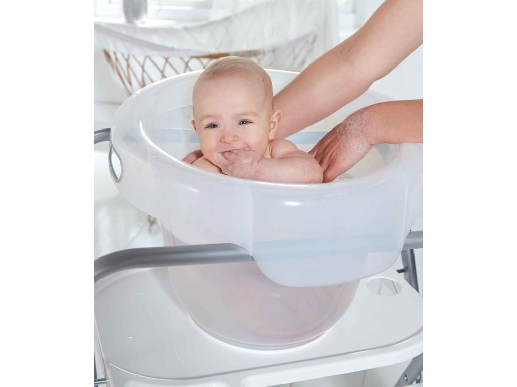 Bébé Bubble je pohodlný nielen pre Vaše bábätko, ale aj pre Vás samotné. Má široký lem, o ktorý si pohodlne opriete predlaktia pri vodných hrátkach. Aj dlhšie kúpanie Vášho bábätka bude pre Vás príjemné. Spolu s kúpacím vedierkom si môžete kúpiť kovový univerzálny stojan dodávaný v dvoch výškach a tak si šetriť svoj chrbát. Kúpanie v kúpacom vedierku Vaše bábätko nielen očistí, ale pomôže aj tlakom vody uvoľniť jeho peristaltiku. To oceníte, keď ho bude nadmuté bruško bolieť a ono nebude môcť spať. Bébé-Bubble je ľahko vyvýšený v zadnej časti a preto poskytuje podporu pre chrbátik aj hlavičku. Vaše dieťatko bude relaxovať v pozícii, na ktorú bolo zvyknuté už u mamičky v brušku, od momentu svojho narodenia až do 6 mesiacov. Vnútorná ryska informuje o odporúčanej výške hladiny vody.