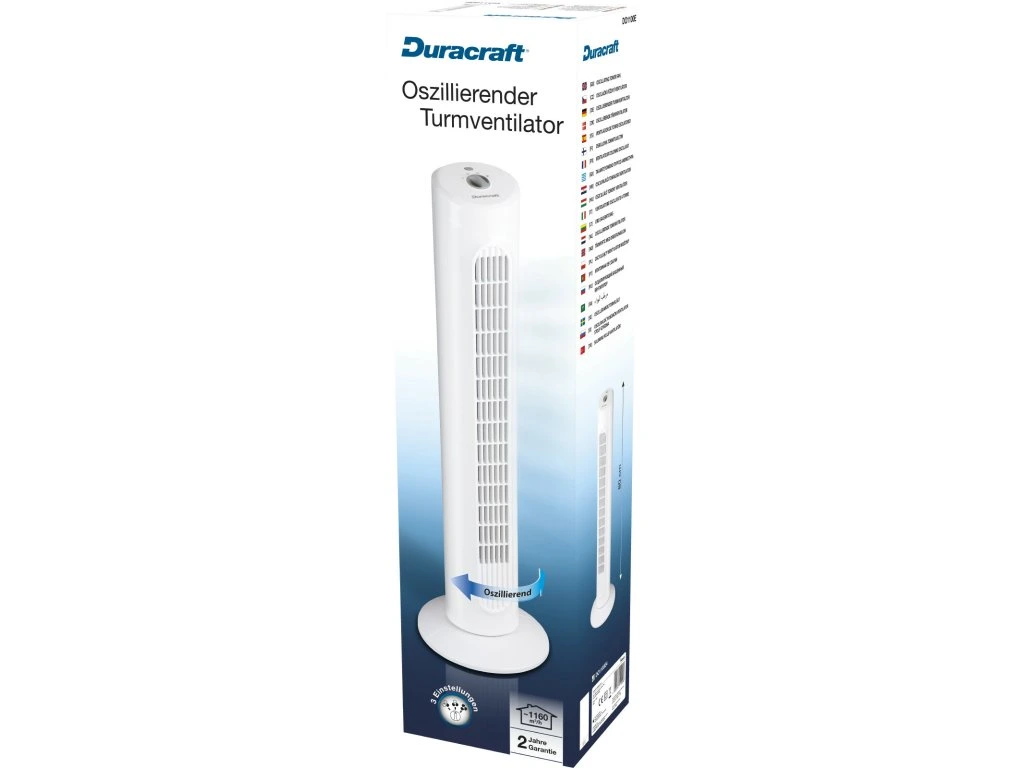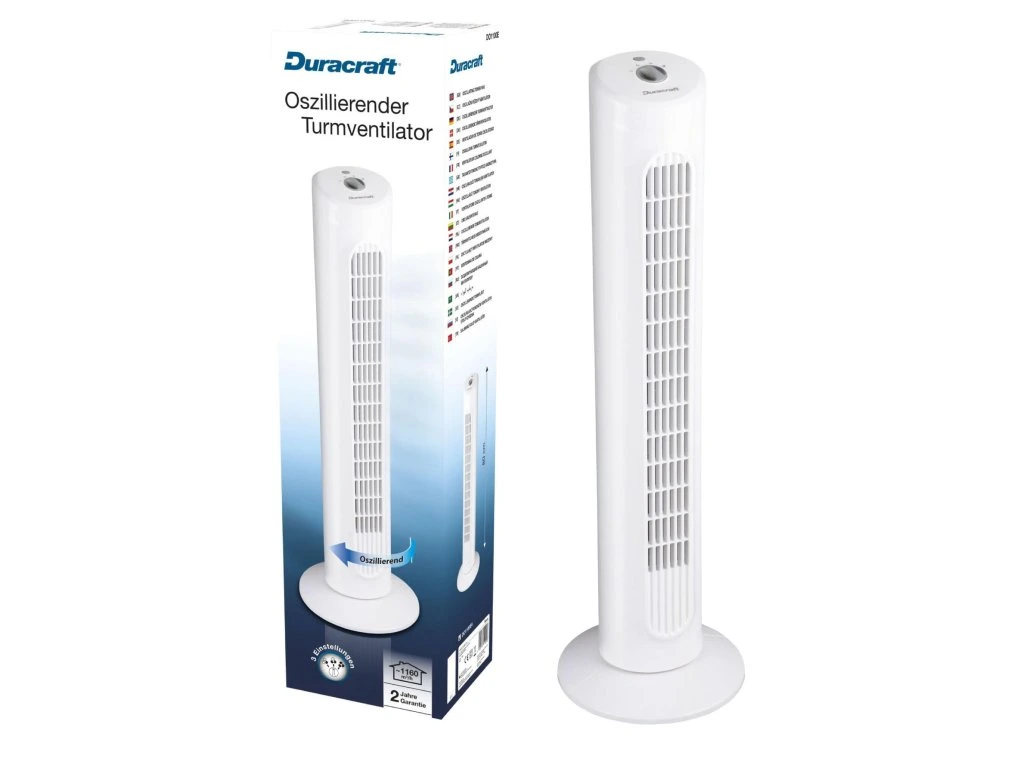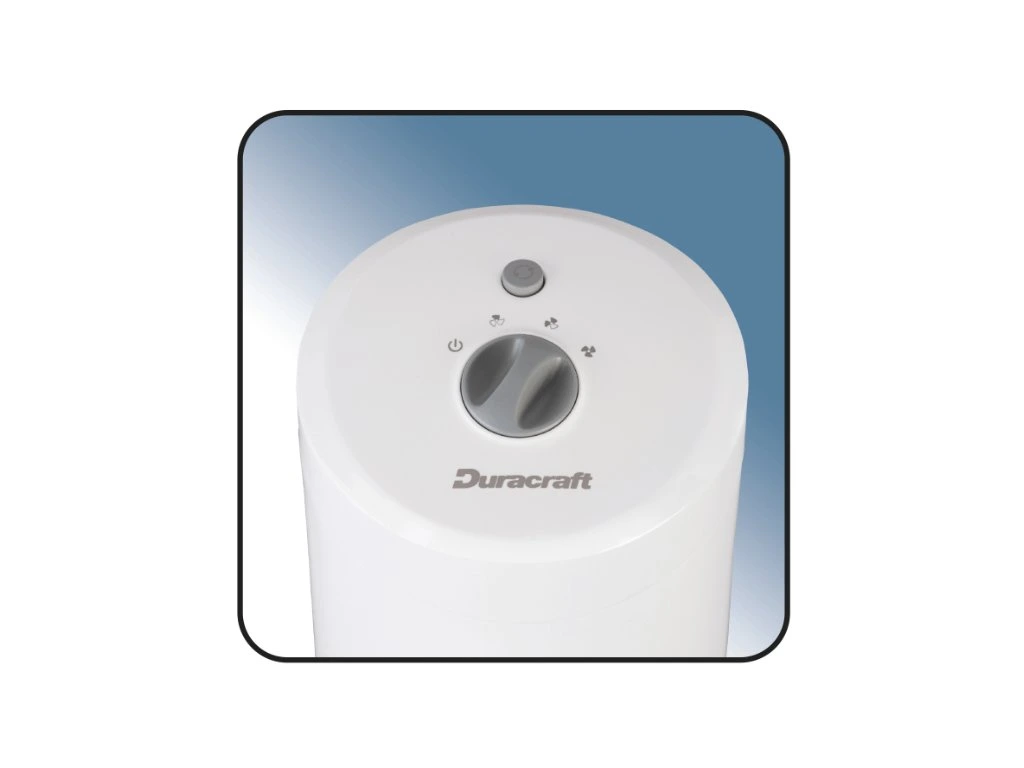 Ventilátor Duracraft pracuje s hlučnosťou 56 dB, takže nezasahuje do vašich každodenných aktivít. Ventilátor sa ľahko používa, gombík mení silu prúdenia vzduchu. Duracraft má 3 rýchlosti, vďaka ktorým prispôsobíte nastavenia zariadenia rôznym podmienkam a vašim potrebám. Vďaka štýlovému dizajnu sa zariadenie hodí do domácnosti alebo kancelárie. Vďaka kompaktnej veľkosti nezaberie veľa miesta. Zmestí sa aj na malú plochu. Jeho stabilná základňa eliminuje možnosť prevrátenia.