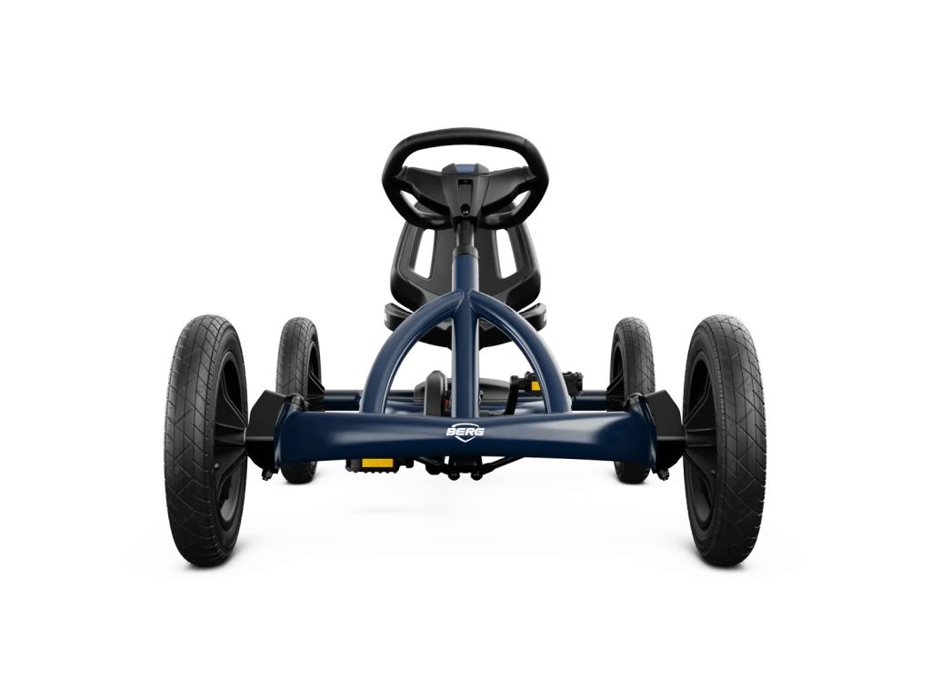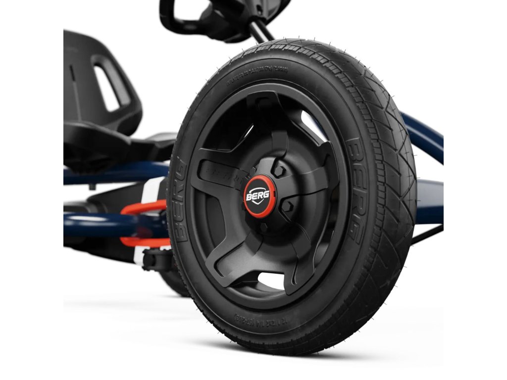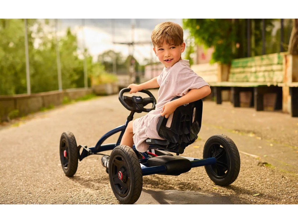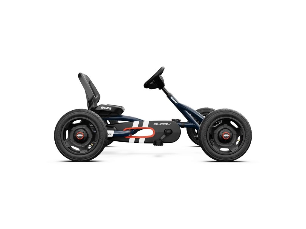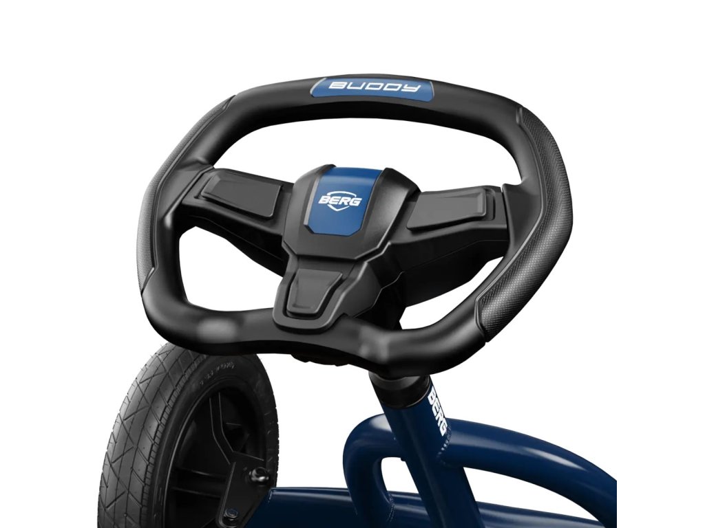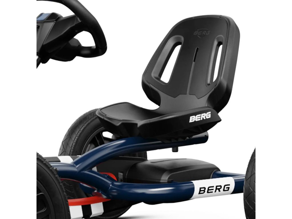 BERG Buddy Classic Blue je šliapací motokára v limitovanej edícii, inšpirovaná prvou motokárou BERG pred 40 rokmi. Vďaka retro farbám a modernej technológii je tento klasický model poctou minulosti. K dispozícii v obmedzenom množstve, preto neváhajte a zaistite si tento jedinečný model! BERG Buddy je vybavený jedinečným systémom BFR. BFR znamená Brake Freewheel and Reverse. So systémom BFR môžete brzdiť pedále a tiež cúvať ihneď po zastavení. Pokiaľ si chcete užívať zábavu s BERG Buddy po mnoho rokov, môžete si nastaviť sedlo. Sedlo je možné nastaviť do troch rôznych polôh, takže vždy dosiahnete na pedále. BERG Buddy má vynikajúcu stabilitu vďaka svojim štyrom kolesám a je tiež vybavený kyvadlovou nápravou. To umožňuje predným kolesám mierne sa pohybovať hore a dole, aby tlmili akékoľvek nerovnosti na ceste. BERG Buddy má pneumatiky pre mimoriadne hladkú jazdu. Tieto pneumatiky majú menší valivý odpor pre ľahšie šliapanie. To znamená, že môžete ísť rýchlejšie! Na BERG Buddy budete jazdiť s extra pohodlím.