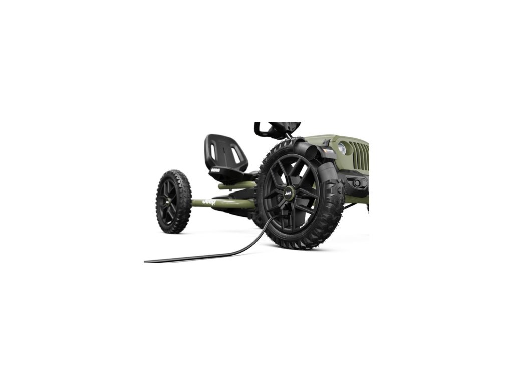 BERG Buddy má vynikajúcu stabilitu vďaka svojim štyrom kolesám a je tiež vybavený kyvadlovou nápravou. To umožňuje predným kolesám mierne sa pohybovať hore a dole, aby tlmili akékoľvek nerovnosti na ceste.