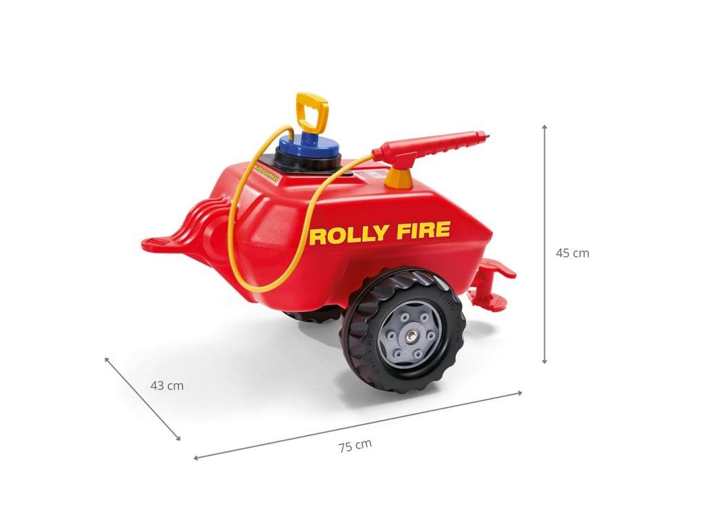 Táto hračka je ideálna pre malého hasiča záchranára a je doplnkom špecializovaného hasičského auta Rolly Unimog a akéhokoľvek traktora Rolly Toys. Je to ideálna hračka pre deti od 3 do 10 rokov, ktoré snívajú o veľkých záchranárskych dobrodružstvách. Táto robustná cisterna bola špeciálne navrhnutá pre malých adeptov hasičstva a ponúka hodiny tvorivej zábavy. Vďaka svojej robustnej konštrukcii vrátane jednonápravového prívesu je "hasičská" cisterna pripravená prevážať vodu, ktorú malí hasiči potrebujú. To však nie je všetko - táto cisterna sa dodáva aj so senníkom s čerpadlom, takže deti sa môžu cítiť ako skutoční hasiči alebo záhradníci. Môžu čerpať vodu z 15-litrovej nádrže prívesu a striekať ručnou hadicou alebo vylievať vodu presne tam, kde je to potrebné. Pomocou striekačky môže malý záhradník alebo hasič polievať záhradu, polievať chodník hadicou atď. Ručné čerpadlo vytvára potrebný tlak!
