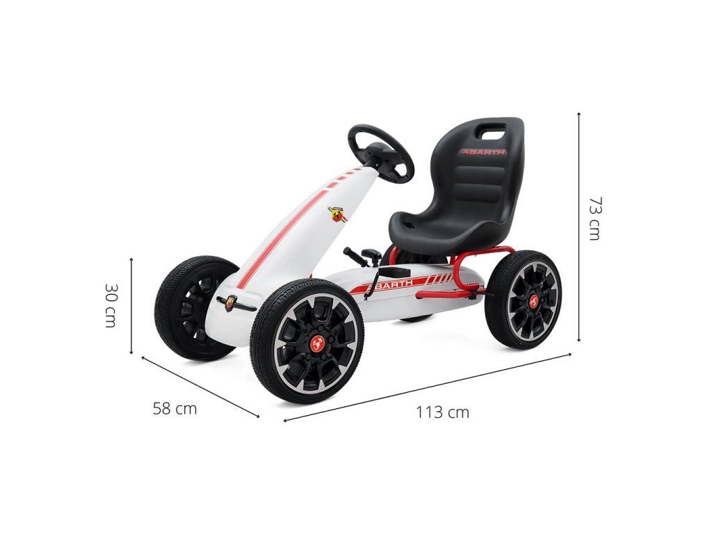Veľká športová motokára s licenciou Abarth bola navrhnutá pre najmladších vodičov. Ľahká kovová konštrukcia s plastovým obložením a sedadlom s nastaviteľnou vzdialenosťou riadidiel, športový volant a veľké penové pneumatiky z odolného plastu EVA zaručujú pohodlnú jazdu na akomkoľvek povrchu. Motokára má zabudovaný reťazový pohon s pedálmi a prepínateľným prevodom dopredu a dozadu, ako aj funkciu voľnobehu a ručnú brzdu pre zadnú nápravu.