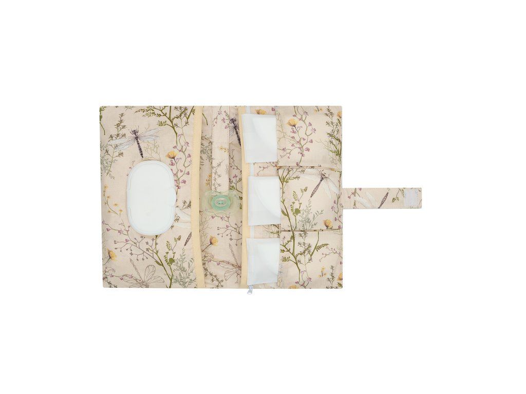 Praktický cestovný organizér v krásnom textilnom prevedení s vnútornými priehradkami vám pomôže prehľadne uložiť prebaľovacie potreby pre vaše bábätko. Vnútri nájdete vrecko na plienky, priehradku na vlhčené obrúsky, vrecko na zips a 3 malé vrecká na drobnosti. Organizér sa ľahko zapína na suchý zips.