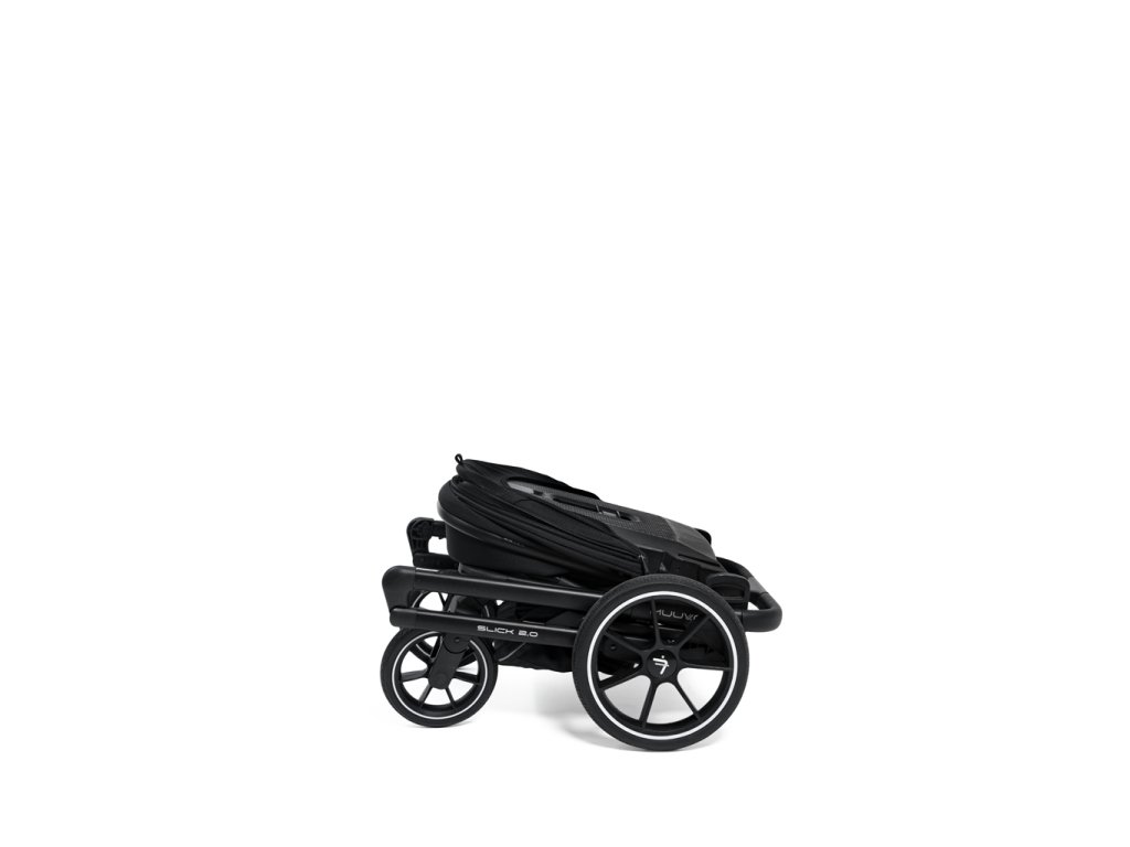 Kočík Slick 2.0 má veľké gélové kolesá a veľmi dobré tlmenie nárazov, ktoré sa budú dobre používať v rôznom teréne. Kočík sa dá zložiť jedným pohybom ruky so sedadlom dopredu a dozadu.