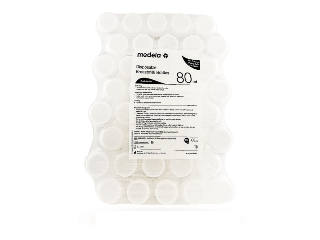 Jednorazové fľaše Medela sú balené v hromadných baleniach po 40 ks.