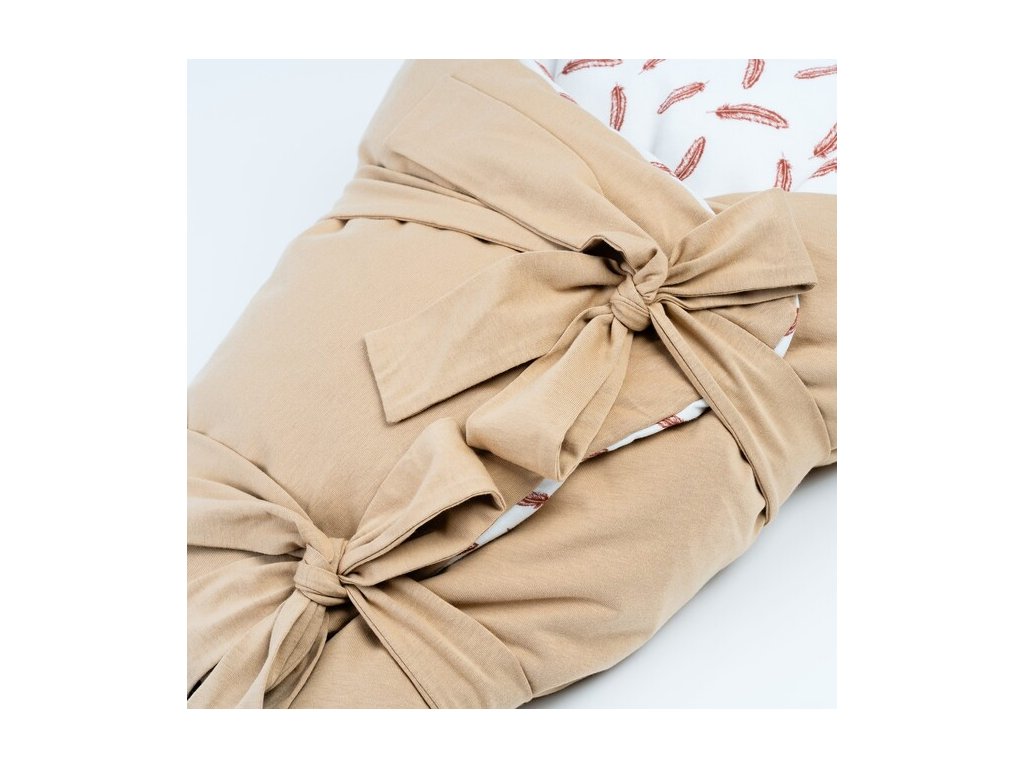Naše perové zavinovačky sme sa snažili vytvoriť tak, aby boli nie len praktické pre bábätko a pre vás, ale potešili aj vaše oko a zároveň ste si ich mohli zladiť s našimi ostatnými textíliami. Na výber vám ponúkame farbu vnútornej aj vonkajšej strany, preto si môžete zvoliť zavinovačku dvojfarebnú, ale aj jednofarebnú a zároveň si môžete vybrať variantu s volánom po celom obvode, alebo bez. Veľkorysý rozmer našej zavinovačky(80 x 80cm) vám zaručí jej využitie po dlhú dobu. Povrch zavinovačky tvorí 100% bavlna a vyplnená je kvalitným husacím perím(300g), ktorý má výborné tepelné vlastnosti, v lete chladí a v zime hreje a zároveň si drží svoj tvar. Pred zavinutím dieťatka do perovej zavinovačky treba perie vždy natriasaním sklepať do rohu, v ktorom bude uložená hlavička dieťatka. Poťah zavinovačky obsahuje zips, takže si ho viete kedykoľvek pohodlne zvliecť a oprať. Vnútorný vankúš plnený perím neodporúčame prať. Naše zavinovačky môžete používať obojstranne.