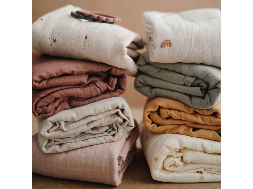 - Textilný výrobok Mushie z mušelínovej tkaniny