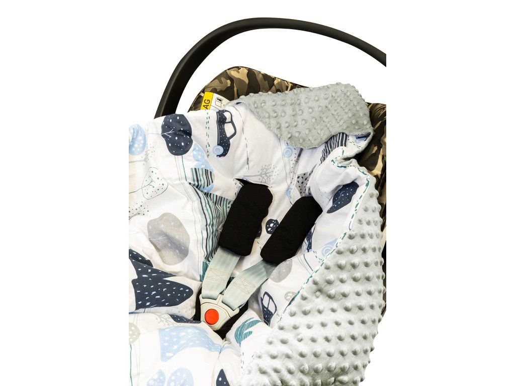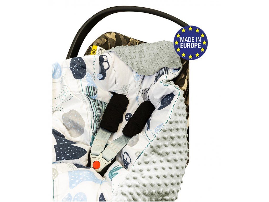Detská luxusná deka do autosedačky vyrobená z jednej strany zo 100% bavlny a z druhej z jemného, hrejivého a luxusného materiálu MINKY.