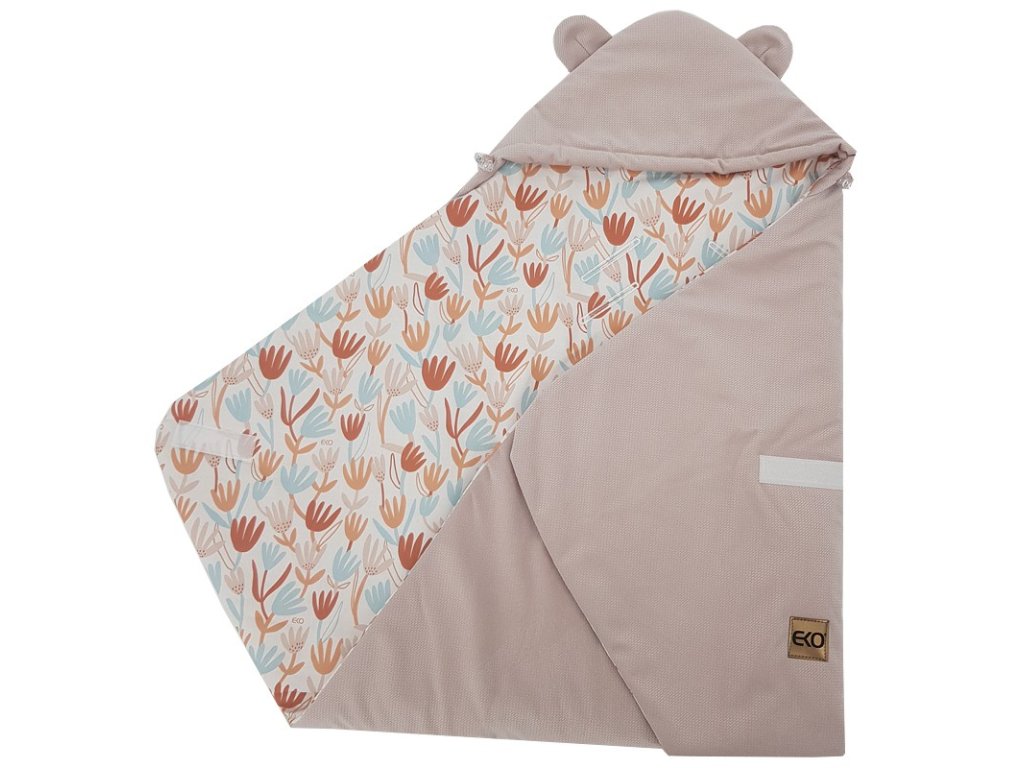EKO Zavinovací fusak do autosedačky VELVET 3 a 5-bodové pásy BEIGE-FLOWERS