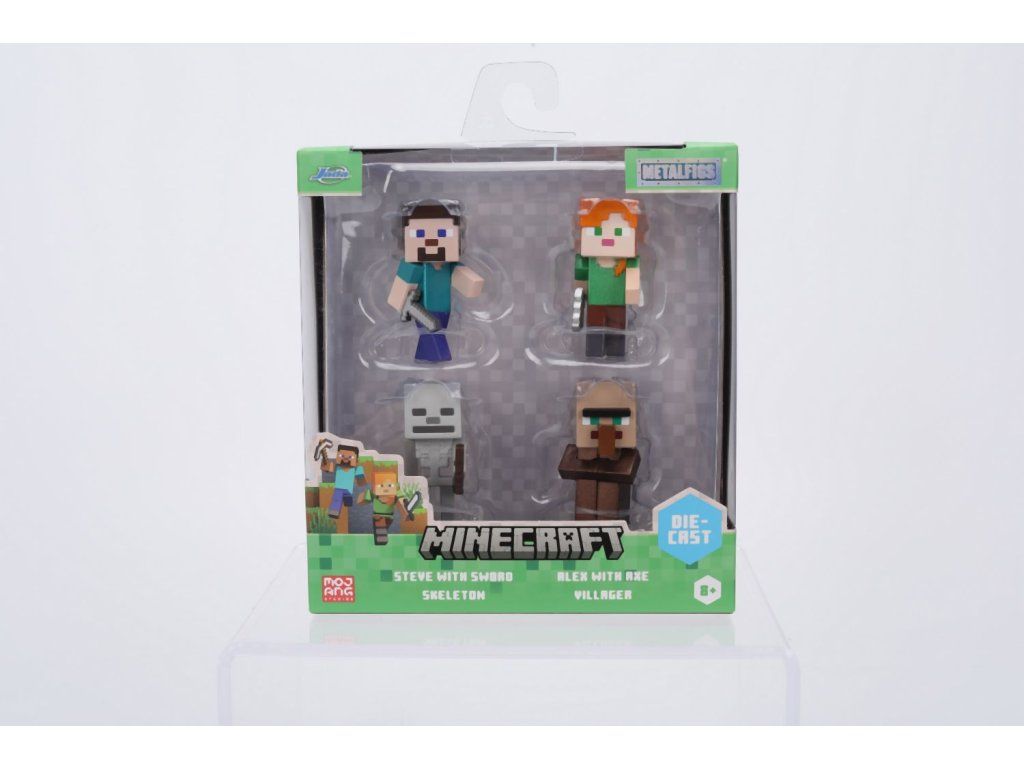 Súprava kovových zberateľských figúrok Minecraft, výška 6 cm. Steve s mečom, Alex so sekerou, Skeleton, Villager.Dodatočné parametre