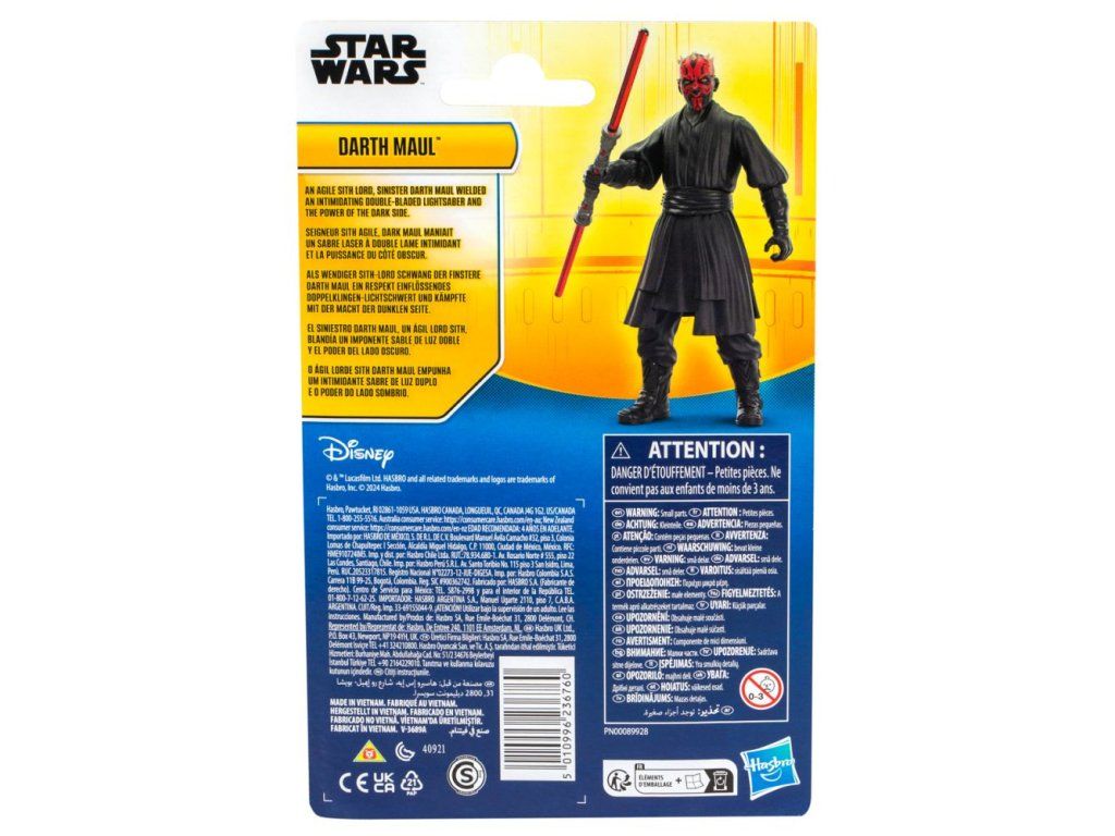 "Predstavujte si dobrodružstvo temnej strany s akčnou figúrkou Darth Maula z radu Star Wars. Táto hračka Darth Maul sa dodáva s červeným svetelným mečom s dvoma čepeľami ako doplnkom a má niekoľko pohyblivých kĺbov, vďaka ktorým ju môžete pri hre polohovať. Akčná figúrka pre deti je vysoká 10 cm a je dokonalým doplnkom do zbierky vášho malého fanúšika. Akčné figúrky Star Wars z radu sú skvelým darčekom pre chlapcov a dievčatá. Figúrka je ako robená na prehrávanie obľúbených, akčných scén z filmov a rozohrávanie nového dobrodružstva. Vek 4+"Dodatočné parametre