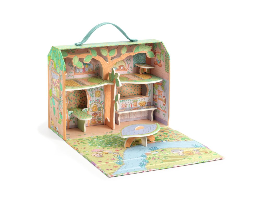 Vďaka magnetickému zatváraniu a pevnej textilnej rúčke si domček zoberiete kamkoľvek – na návštevu, dovolenku aj k starým rodičom.