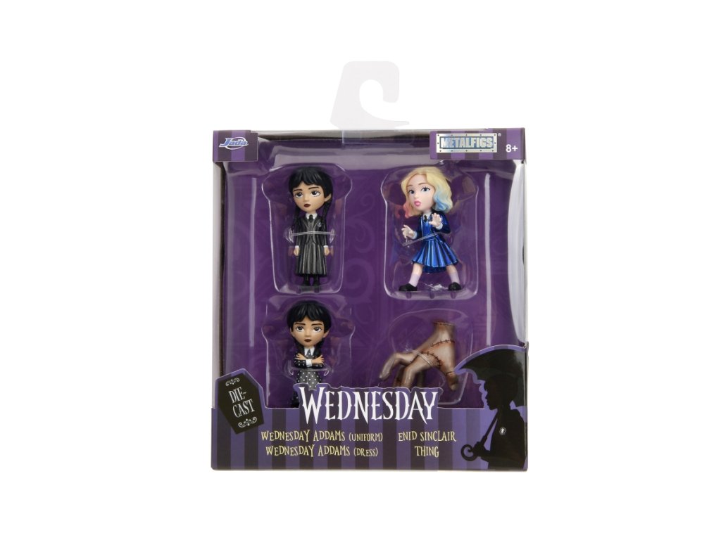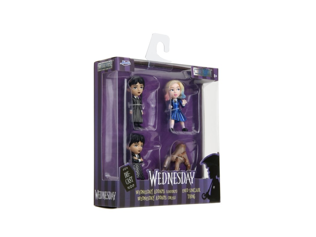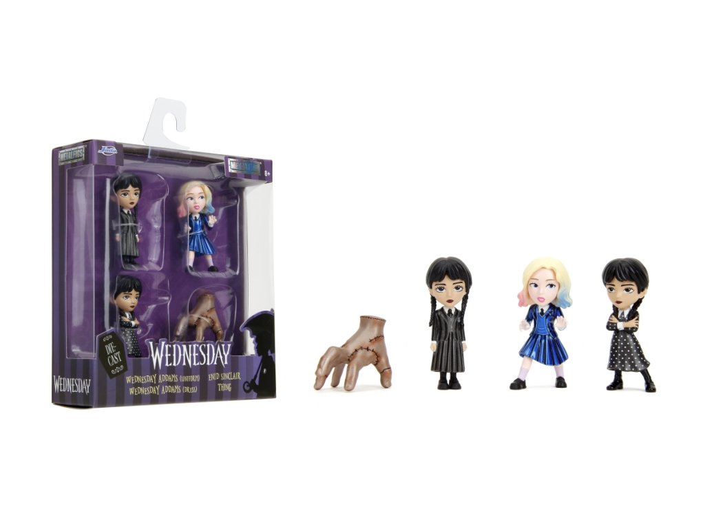 Súprava 4 kovových figúrok z filmu "Wednesday" vo veľkosti 6 cm. Postavy: Wednesday "pruhy", Vec, Wednesday "bodky", Enid.Dodatočné parametre