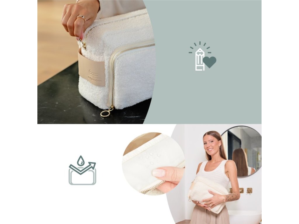 - elegantný dizajn: ultra mäkké froté, zlaté zipsy a široká rukoväť z umelej kože
