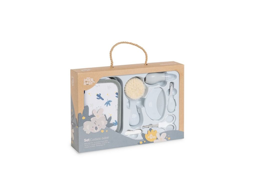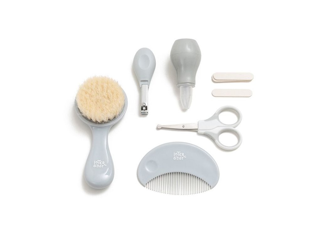 Sada osahuje kefu s prírodnými štetinami, hrebeň so zaoblenými hrotmi, nožnice so zaoblenou špičkou, nosnú odsávačku s pružnou a mäkkou špičkou, klieštiky a pilníček na nechty. Univerzálna súprava je ideálna na cesty aj na domáce použitie.