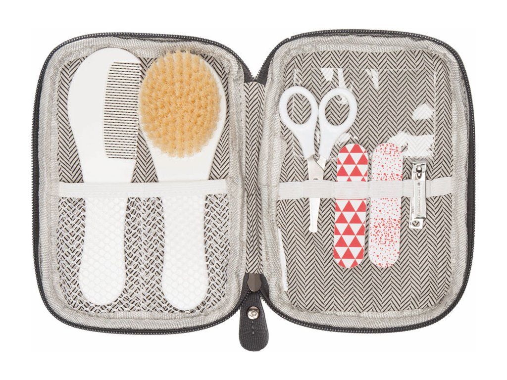 Šikovná manikúra v modernom puzdre. Nádherná je kombinácia s prebaľovaciou taškou značky Little Company Company Milan! Sada manikúry je veľmi vhodná pre cestovanie alebo pre každodenné použitie. V minulosti sa nechty novorodencov nestrihali. Aby sa predišlo poškriabaniu tváričiek, navliekali sa bábätkám rukavičky. Tieto časy sú už minulosťou. S manikúrou už nie je starostlivosť o nechty žiadny problém, ale musíte postupovať veľmi opatrne. Malý pilník na nechty pomáha pri dokončení. Manikúra je určená pre deti od narodenia do ich 5 rokov. Súprava obsahuje klieštiky na nechty, nožnice na nechty so zaguľatenými koncami, dva pilníky na nechty a rôzne odkladacie priestory.
