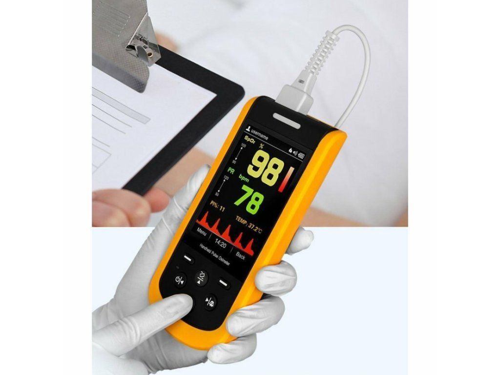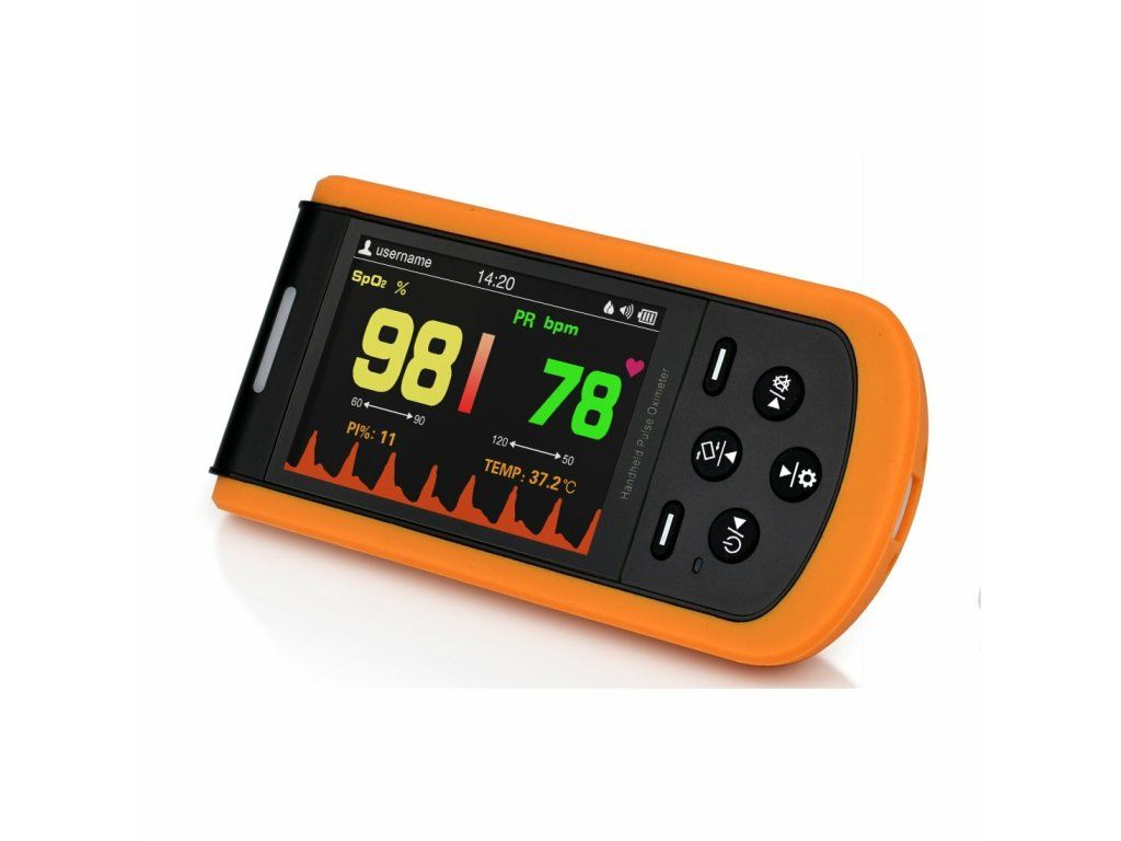 * Prevádzka na batérie a sieť. Pulzný oxymeter s nabíjacou stanicou.