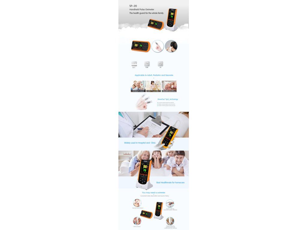 * Pulzný oxymeter SP-20 pracuje so senzormi SpO2 založenými na technológii Nellcor.