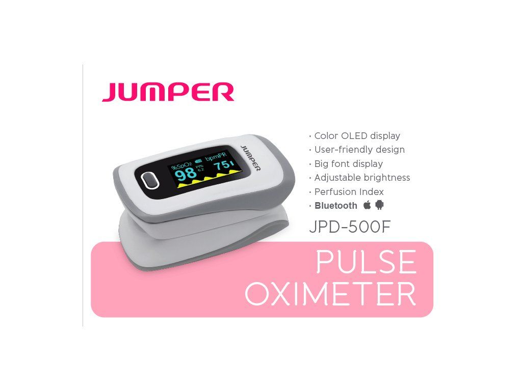 JUMPER JPD-500F pulzný oxymeter s obrazovkou OLED a Bluetooth, šedý