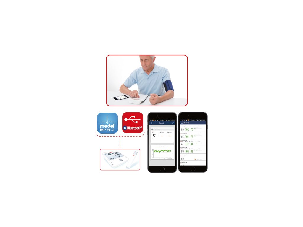 Kombinácia tlakomeru s funkciou EKG poskytuje najpresnejšie merania a kontrolu nad prácou srdca. Má 1-kanálovú EKG kameru na zaznamenávanie srdcového rytmu. Aplikácia pre EKG prístroj.